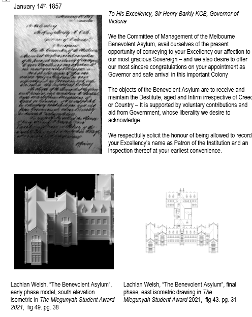 Which brings us to The Benevolent Asylum. Our digital exhibition features images of a building that once occupied a large and very prominent area not far from where we are broadcasting from on the Miegunyah site.
