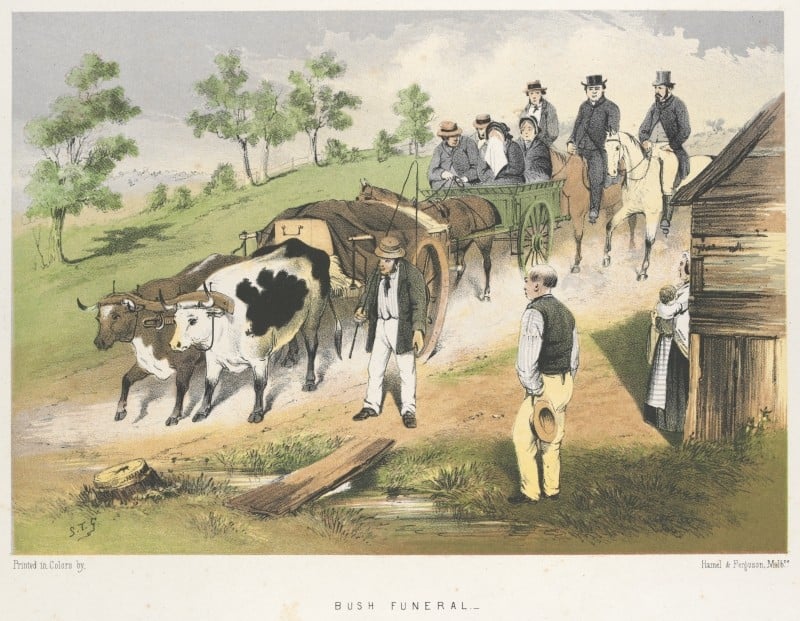 The cyclorama zooms out from the melancholy. In panoramic view: Gill as the toast of the town! There are goldfields and campsites, expeditions and panoramas, funerals, festivities, joy and despair, luck and misfortune. The images are flying across the screen with – a colonial consciousness propelling them, it seems to me, across the world in letterheads and prints.