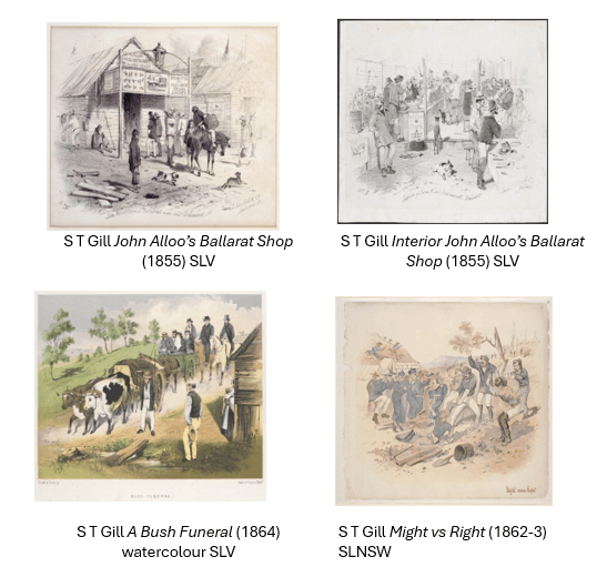 More works by Gill. Even the titles hold a mirror to colonial society: Lucky Digger that Returned (1853); Unlucky Digger that Never Returned (1869), Might vs Right (1862) and so on.