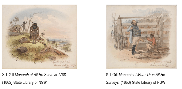 Exterior view. Looks like a hundred or so encumbered free settlers disembarking onto the lands of the Kaurna People. They straggle from ocean to shore. They appear, to me, as an evolving species. Do my human aspects have ancestors amongst them? Samuel is surveying the coastal climes. Does he feel the eyes of local people upon him? Or has he sensed the lens of human history zooming in? He follows the free settlers into the hinterland. They step-it-out as if the dirt pathway was red carpet laid out for royalty, and not a way-finder forged over centuries by local people.